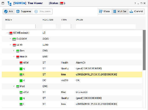 The following screen examples show the basics of the simulator interface SmartGridware® IEC 61850 IED Simulator: using the (click to view):